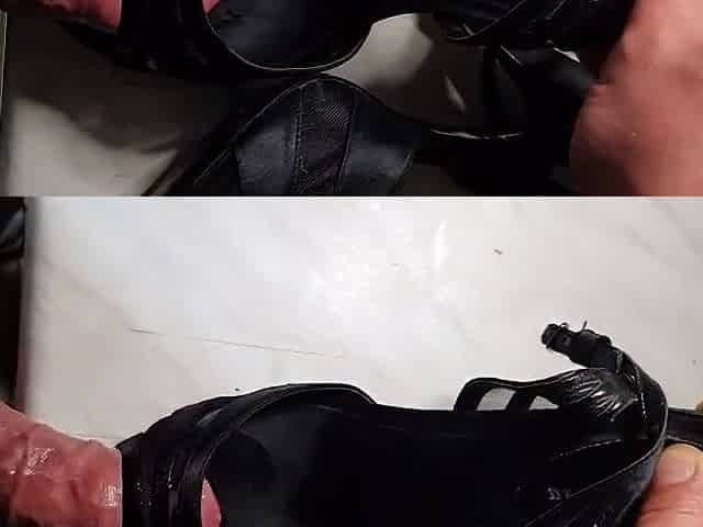 Good fucking and cum black sandals heels