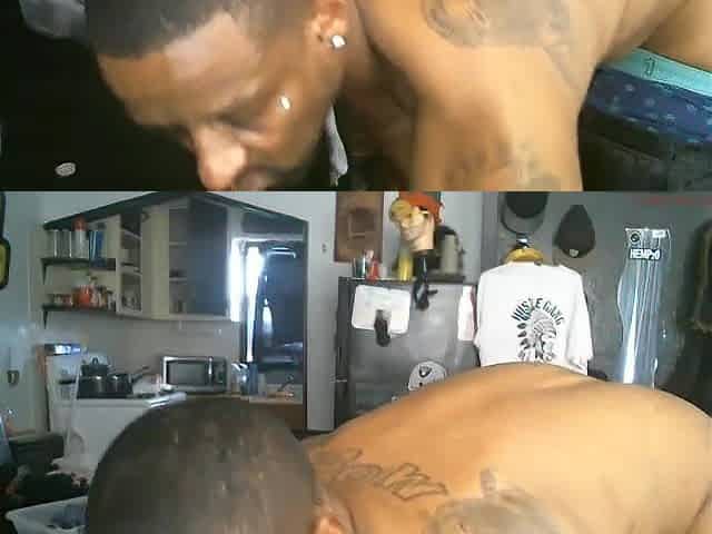 Masked and tattooed black stud cums in his boyfriends mouth IR