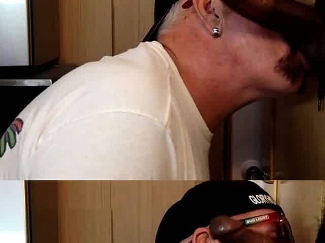 Gloryhole BJ DILF sucks fat black dick with his eager mouth