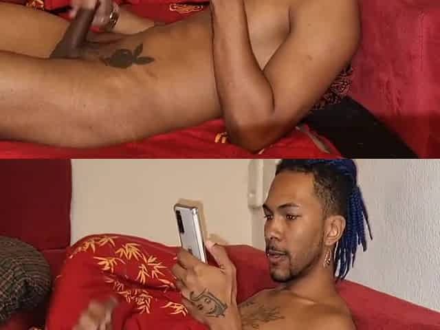 Real solo African twink jerks black cock