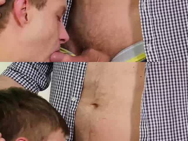 Skinny white man and a black guy get their big cocks sucked by horny dude