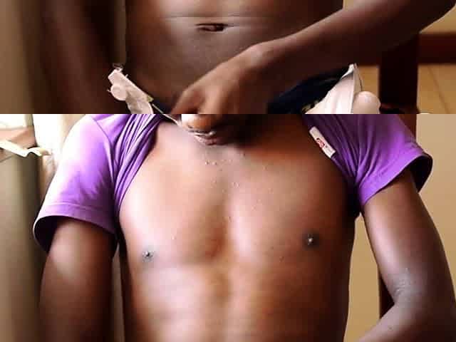 Real solo African twink jerks hard dick