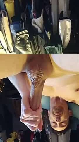 Cumming in layered LATEX pants and cock sleeve