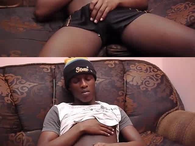 Solo amateur African twink jerks cock