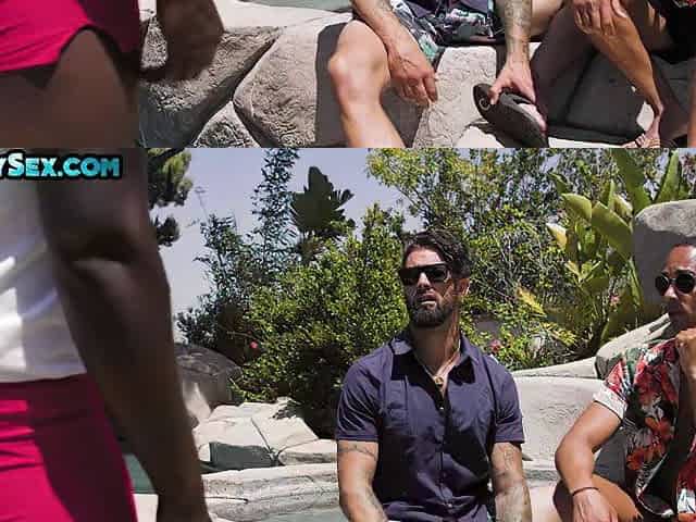 Gay bbc studs fuck white booty in the ass in a threesome fuck