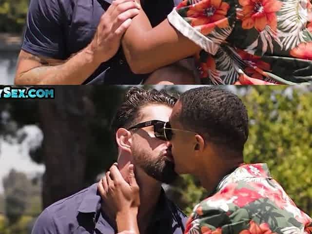 Huge black hunk gets his cocked sucked by a white dude before fucking and creaming him