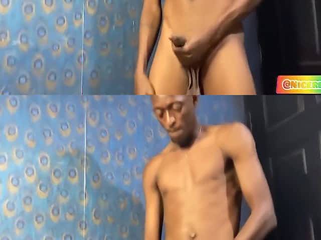 Twink African strips and jerks his dong