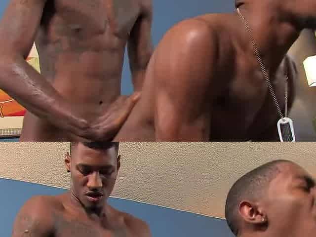 Horny black stud in room gets cock blown by white guy and ass fucks him
