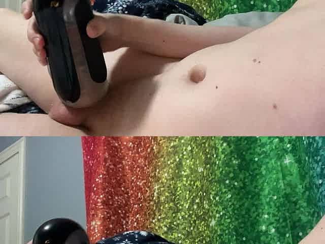Twink jerks his bulky knob in a cock-sock - LARGE EJACULATION