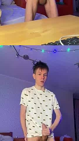 Skinny Lad Cranks Pulsing Boner Untill White Cum Life