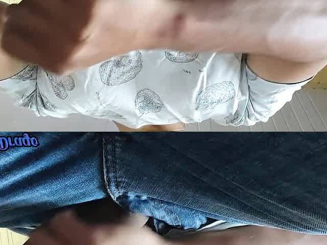 a ally jerked off my large rod and then finished himself using my cum as lubricant