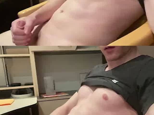 Blue Eye Hottie Gay Boy Jerks off with Camera Man 2 Dicks Cumming Together!