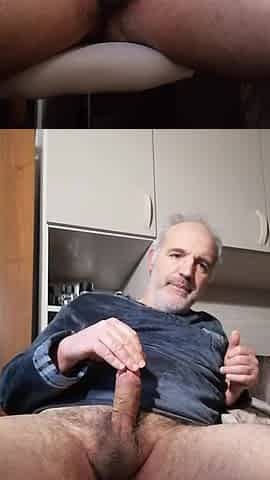 Dildo up My Ass and Boyfriend Jerking off Until He Cums