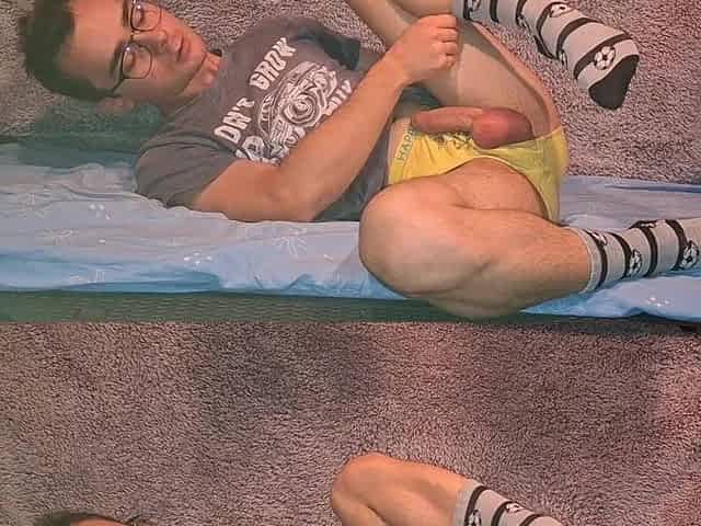 I Was Playing with My Cock After College, Wearing Yellow Underwear and Socks Which I've Covered with Cum!