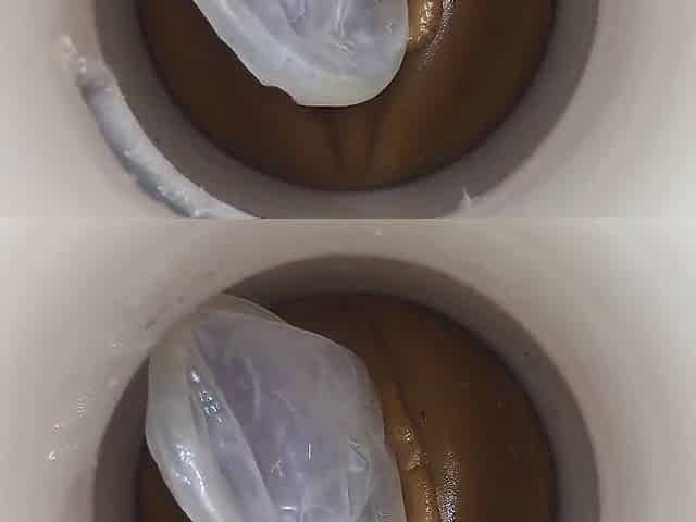 Cum in a transparent, hollow toy with a wide, ribbed head that barely fits in my urethra!