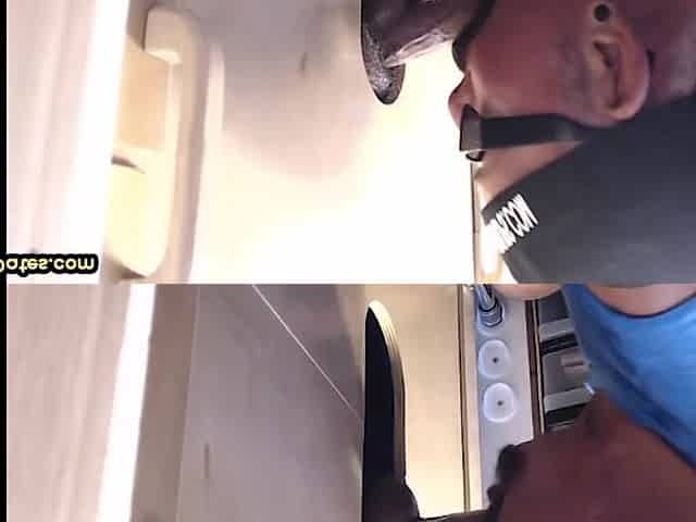 Twink masturbates in a public bathroom and grabs a random guys big cock and makes him cum