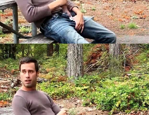 A young guy cums outside