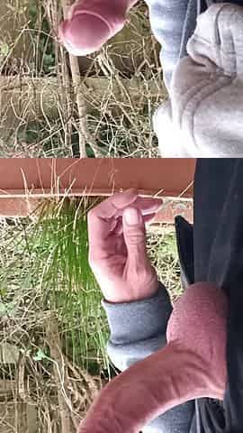 In nature's garb in town park, jerking of, large cum. 4K Iamhornybobo