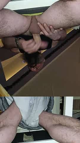 I sit my neighbour in a chair to suck and smack his giant thick ramrod until that guy comes