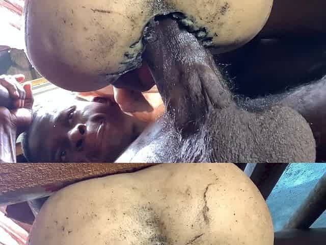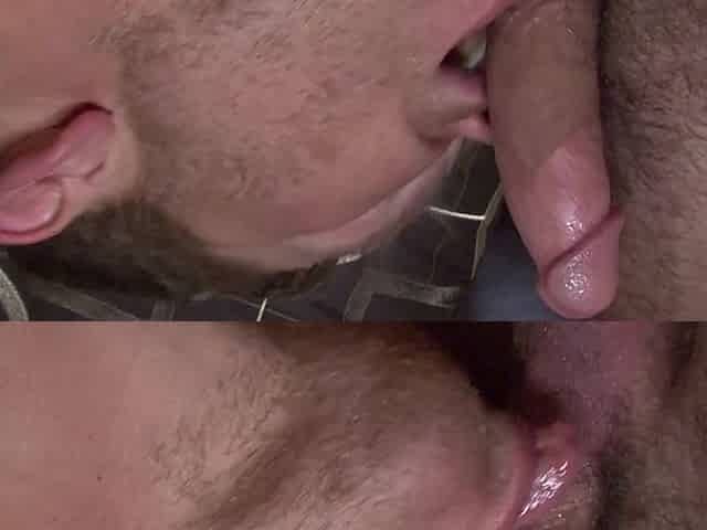 Barebacked gay cum felching