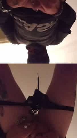 Gothic amateur masturbating his rock hard cock in kinky solo