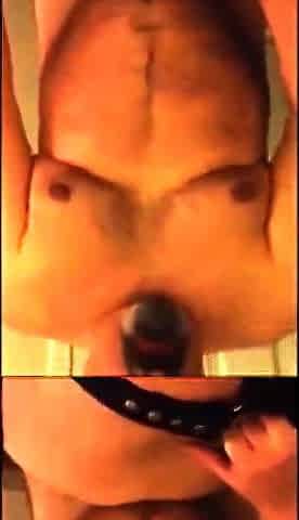 Chub in Strap Shoves a Large Plug in his Rectal hole