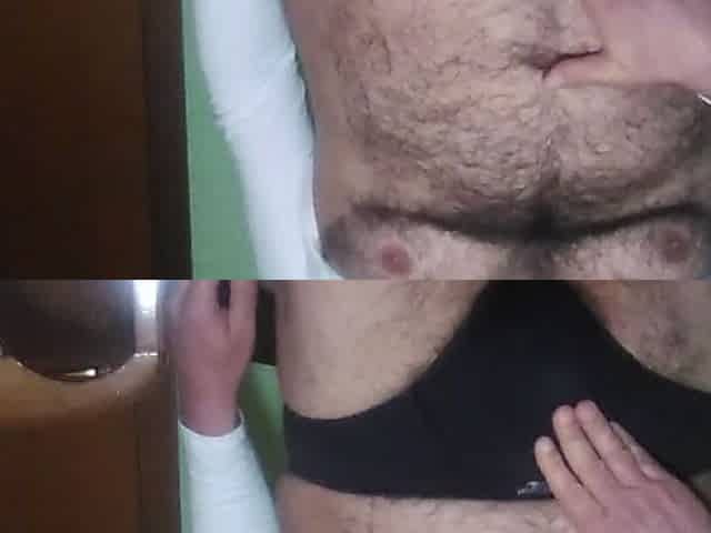 Bear plays with his fat cock