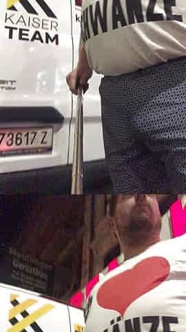 "Strongman Competition Sneaks Behind Gym and Cums Huge Handsfree Load Behind the Gym"