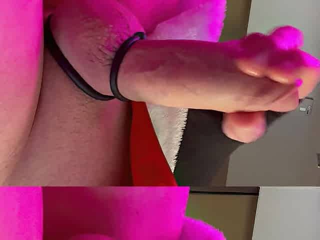 Festive femboy jerks his chunky penis and cums - LARGE SPUNK FLOW