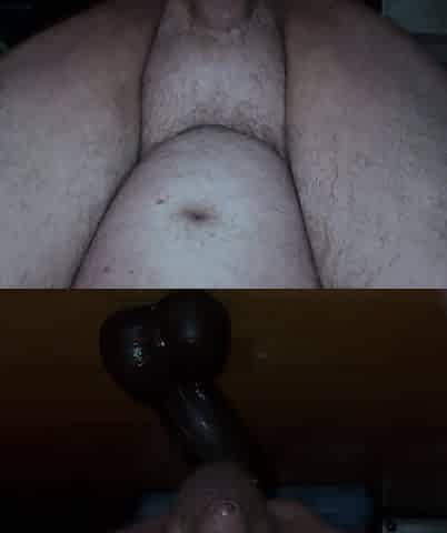 Chubby Bear Middle Aged Shaved Legs Smoothmasturbation Fuck with Black Circular Dildo up Ass