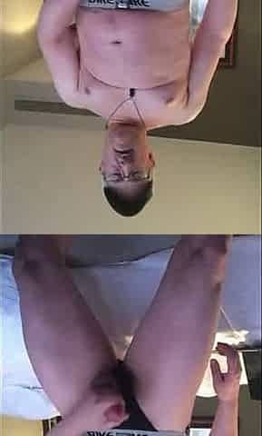 Chub in Strap Shoves a Large Plug in his Rectal hole