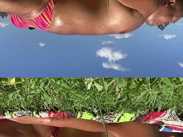 Sunbathing in Bayonne Park in my colorful rio bikini