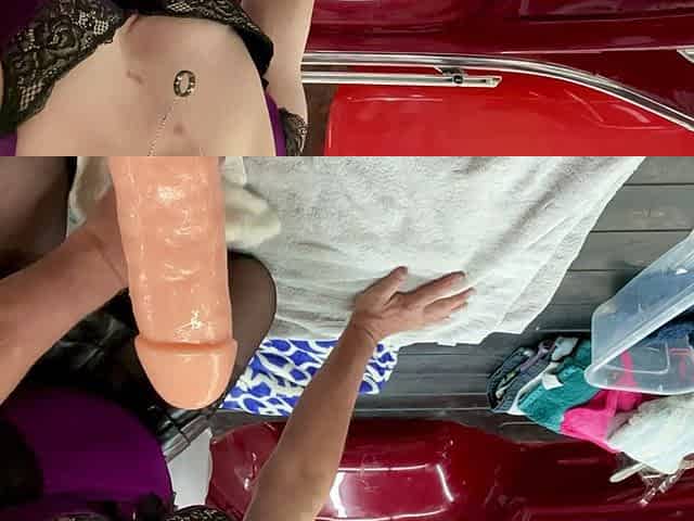 3 Rides on Big Ribbed Dildo on Swivel