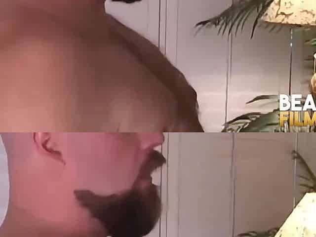 "BEARFILMS Redhead Bear Logan Stanley Spitroasted In 3some"