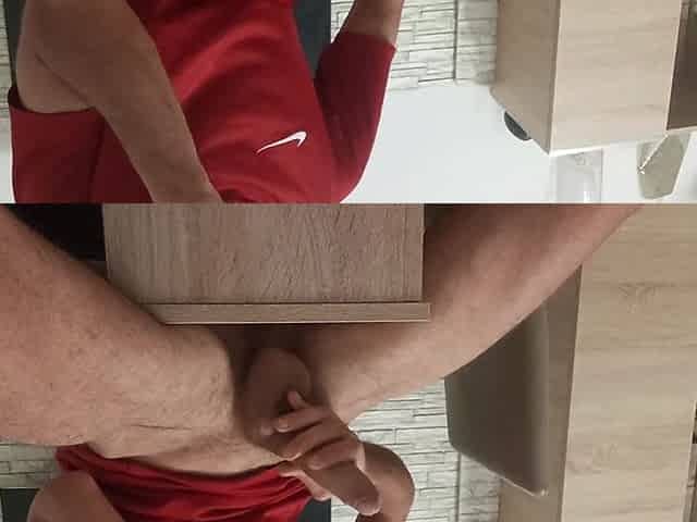 The Guy with the Huge Cock so Fat in His Pants, He Unloads It with 5 Jets of Semen in the Air