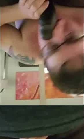 Laying Back Stroking My Curved Cock in Clear Toy Showing Pierced Nipples Until I Cum and Creampie