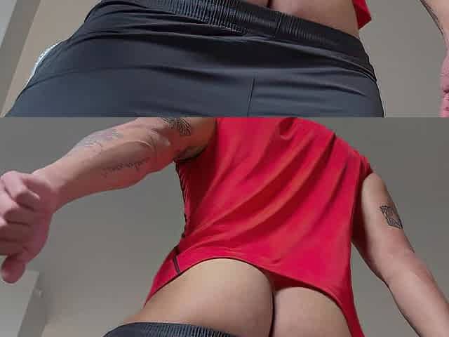 Two hot femboys striptease & jerk off their cock