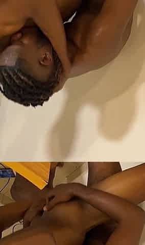 Ebony Stud Cums While Being Fucked Hard