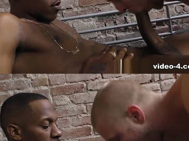 Tattooed white stud ass fucked by big black cock gay doggy style