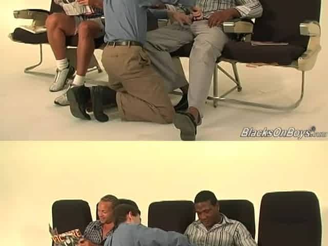 White dude sucking off two black cocks