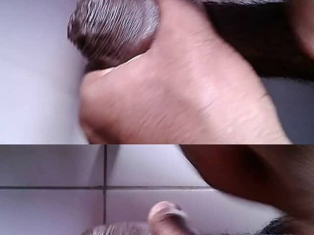 Bear cub jerks off thick black cock in the shower