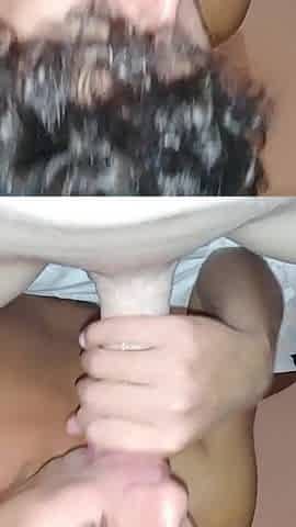 Bearded Guy Sucks Interracial Cock in a Public Restroom