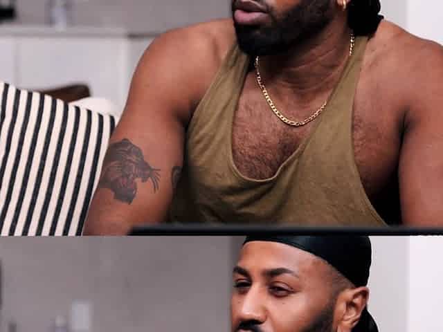Black hunk fucks IR studs bareback in threesome until cumshot