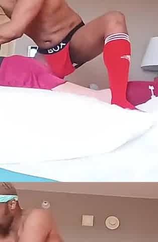 Muscular gay man calls his friend to fuck