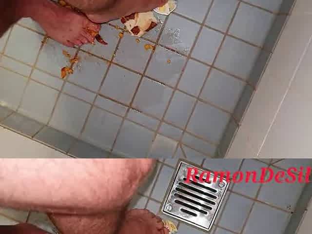 Master Ramn crushes, tramples, tramples the food in a hot satin thong with his divine feet