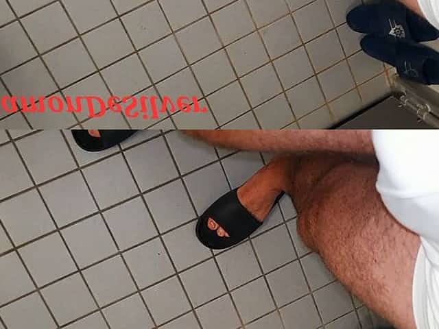 Naughty in a dirty bathroom floor