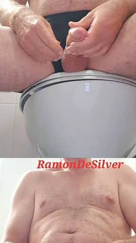 Master Ramon massages his divine cock in hot silver satin shorts and even has to pee a bit