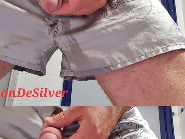 Master Ramon pisses in hot silver satin shorts, just divine