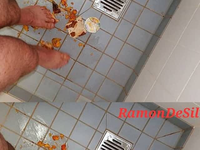 Master Ramon, urinates, crushes, tramples, tramples food in a sexy satin thong with his divine feet, part 4