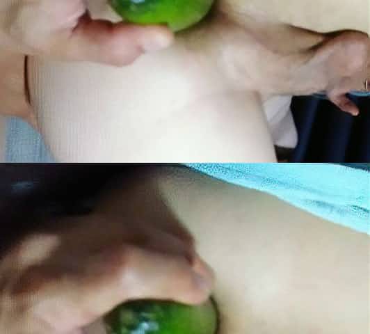Anal playing with massive cucumber
